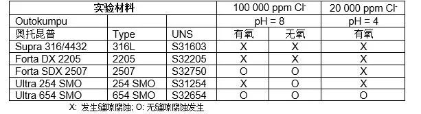 由于Ultra 654 SMO較高的合金化程度,所有腐蝕試驗都是在極為苛刻的環境中進行的,如非常高的氯離子含量、高溫、長時和低pH值等。只有在這樣的環境才能充分體現 Ultra 654 SMO的真實能力。同時還用不同方法進行了焊接試驗,通過添加焊接填充材料和焊后表面處理來影響焊縫金屬耐腐蝕性能。就這些試驗的主要結果,本文做了重點介紹,最后也列舉了一些實際應用案例。