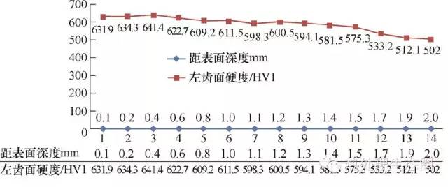 圖4  左右齒面有效硬化層深度的顯微硬度測定數據
