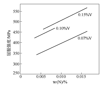 圖6 氮對不同釩含量鋼(0.17%C-1.04%Mn)屈服強度的影響