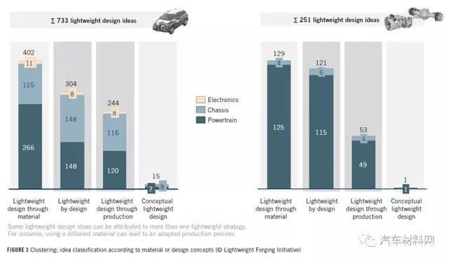 (圖1顯示了項目詳細信息和技術車輛數據:研究項目共提出了733個混合動力汽車輕量化設計構思和251個卡車輕量化構思。)