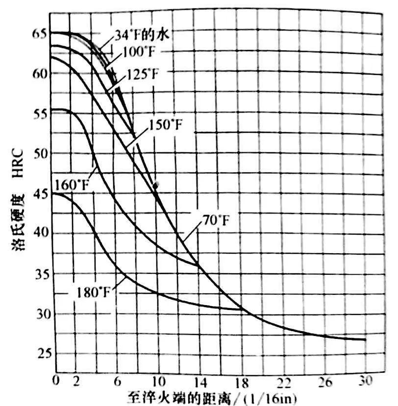 末端淬火程序是使用24±3℃(75±5°F)的水,水溫達到40℃(100°F)以上時,其影響變大。見圖8 。