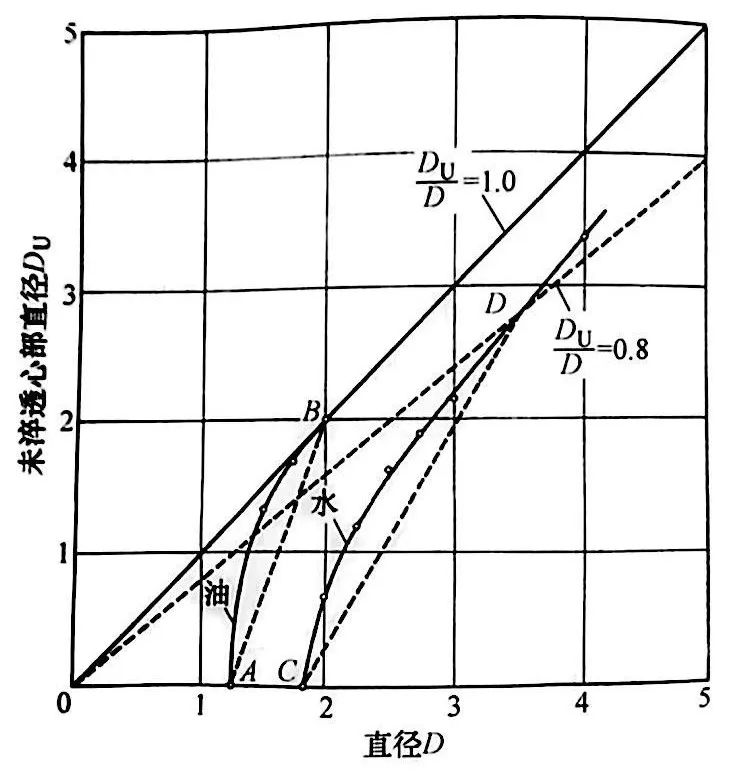 在不同淬火條件下,以未淬硬直徑(DU) 與圓棒直徑(D) 為坐標繪制關系圖,見圖12 。