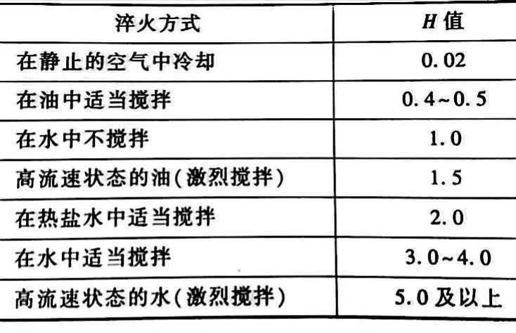 格羅斯曼及其同事研發的圖表和方法具有重要的實用價值,盡管他們假設 H 值在淬火期間是一個常數。雖然對于不同尺寸的不同鋼種來說這種計算方法是不嚴密的,然而,對于普遍現象,它清楚地闡明了當淬火棒的尺寸增加時,用中等淬冷烈度比用更劇烈的淬冷烈度淬火心部未淬透比例迅速增加。它也闡明了其他情況,諸如在非常大的圓柱體上維持一個淺層淬硬層,即便是淬透性適度降低,當淬火十分劇烈時,隨著直徑的變化,淬透厚度(D-Du) 幾乎沒有變化。同樣地,它闡明了在中等淬冷烈度的淬火冷卻介質中淬火時,對于相當小的鋼試樣,淬火圓環邊緣突然消失的原因。相應地,這些數據表明在某些條件下,軟點幾乎是不可避免的。H系數包括影響鋼的散熱的表面狀態(氧化皮厚度和結構), 以及熱擴散系數。此外,去除阻礙淬火的蒸汽膜中攪拌的影響,也體現在 H 值上。
