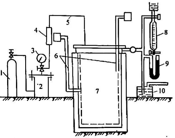 它是利用氨易溶于水而其分解產物不溶于水這一特性進行測量的。使用時首先關閉進水閥并將爐罐中的廢氣引入標有刻度的玻璃容器中,然后依次關閉排氣、排水閥和進氣閥,打開進水閥,向充滿廢氣的玻璃容器注水。由于氨溶于水,水占有的體積即可代表未分解氨的容積,剩余容積為分解產物占據,從刻度可直接讀出氨分解率
