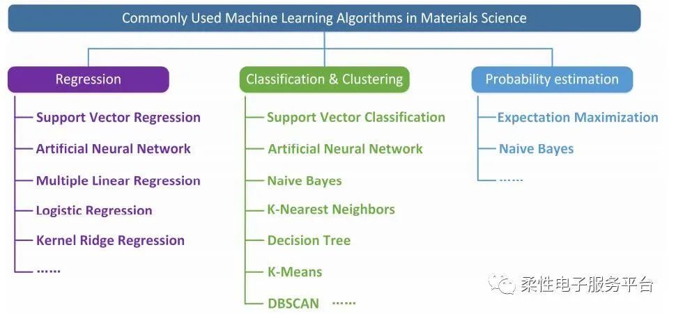 圖4 材料科學中常用的機器學習算法的四大分類