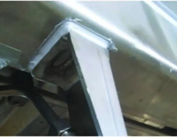 選材設計的防腐蝕要求 目前,不銹鋼地鐵車輛的車體材料設計多數采用“不銹鋼+局部碳鋼”的混合設計模式:整個車體僅端牽枕采用碳鋼材料,其余部分為不銹鋼材料。端牽枕采用碳鋼材料主要是為了解決端牽枕部位的厚板承力和焊接變形等問題。 不銹鋼車體材料主要為防腐蝕性能優良的SUS301L系列奧氏體不銹鋼,包括SUS301L-ST?SUS301L-MT?SUS301L-HT?SUS301L-DLT等多個強度級別的材料。選材時主要考慮部件的強度需求以及成型要求。 底架端部結構為碳鋼材料,牽枕緩承力部件主要采用具有良好冷成型性能的高強度耐候鋼。不銹鋼材料防腐蝕性能較好,表面不需要再涂漆,但外露的弧焊焊縫部位要進行鈍化處理,碳鋼部件外露面、異種鋼接頭混合區域都要進行油漆處理。 不銹鋼車體腐蝕原因 由于不銹鋼表面存在鈍化膜,在一般情況下不銹鋼較難與介質發生化學反應而被腐蝕,但并不是在任何條件下都不能被腐蝕。當環境中存在腐蝕性介質和誘因時,不銹鋼也能與腐蝕介質發生緩慢的化學和電化學反應從而腐蝕生銹。如不銹鋼表面附著的油污、灰塵、酸堿鹽等污染物在大氣、水等環境作用下會轉化成腐蝕介質,與不銹鋼基體發生氧化反應形成化學腐蝕;不銹鋼加工過程中產生的表面劃痕,附著的割渣、飛濺物等易生銹物質,在大氣和水等環境作用下與不銹鋼基體形成原電池產生電化學腐蝕現象。因此,在不銹鋼車體制造過程中應采取有效措施保護不銹鋼表面,盡量避免銹蝕條件和誘因的產生。通過分析某個非涂裝不銹鋼車體生產過程中的腐蝕現象,將生產過程中導致不銹鋼車體腐蝕的原因歸納為以下五類: 1 存放、運輸及吊運不當 在存放、運輸及吊運中,遇到硬物劃傷,異種鋼接觸,灰塵、油污、鐵銹等污染時,不銹鋼件(包括原材料)會發生腐蝕。 不銹鋼與其他材料混合存放、存放使用的工裝不當,容易對不銹鋼表面造成污染,引起化學腐蝕。運輸工裝、夾具使用不當會造成不銹鋼表面磕碰、劃痕,從而導致不銹鋼表面鈍化膜破壞,形成電化學腐蝕。吊具、夾頭使用不當,過程操作不當也會導致不銹鋼表面鈍化膜破壞,引起電化學腐蝕。 2 原材料下料、成型 卷鋼板材料需要經過開平、裁剪、折彎或棍彎等方式才能加工成使用的零件。在上述加工過程中,因切割、夾持、受熱、磨具擠壓、冷加工硬化等導致不銹鋼表面富鉻氧化物鈍化膜遭到破壞,引起電化學腐蝕。 正常情況下,鈍化膜被破壞后暴露出的鋼基體表面會和大氣反應進行自我修理,重新形成富鉻氧化物鈍化膜,繼續對基體起保護作用。但是,如果不銹鋼表面不潔凈,則會加速不銹鋼的腐蝕。在下料過程中的切割熱和成型過程中的夾持、受熱、磨具擠壓、冷加工硬化等都會導致組織不均勻變化,引起電化學腐蝕。 3 熱輸入 當溫度達到500~800℃時,不銹鋼中的鉻碳化物會沿晶界析出,晶界附近因含鉻量下降而出現晶界腐蝕。奧氏體不銹鋼熱導率約為碳鋼的1/3,焊接時產生的熱量不能很快分散,大量聚集在焊縫區域使溫度升高,導致不銹鋼焊縫及周邊區域發生晶界腐蝕,另外其表面氧化層遭到破壞,容易引起電化學腐蝕,因此焊縫區域極易發生腐蝕現象。在異種鋼焊接時,異種鋼易發生電化學腐蝕。火焰調修會造成不銹鋼表面鈍化膜層的破壞,尤其對同一區域進行反復加熱時,錘擊造成金屬表面氧化膜破壞,不均勻的組織和鈍化膜的缺失都會誘使電化學腐蝕的產生。 焊接作業完成后,通常需要對焊縫外觀進行打磨處理,清除黑灰、飛濺、焊渣等易誘發腐蝕的介質,同時對外露弧焊焊縫進行酸洗鈍化處理,異種鋼焊接接頭則需要進行油漆找補。矯形時盡量采用機械裝置,或用木錘(橡皮錘)或墊橡皮墊錘擊,禁止用鐵錘錘擊,以避免損傷不銹鋼件。 4 設計結構不良 在實際生產過程中,很多設計結構不合理同樣會導致車體腐蝕。比如窄空間半封閉焊接結構容易腐蝕,因為零件焊接完成后焊縫、氧化色不易打磨清理,焊渣不易剔除,易生銹物質的附著與腐蝕介質形成電化學腐蝕。單面焊、斷續焊、多層板疊用存在縫隙結構,會導致縫隙腐蝕。設計結構不合理導致排水不暢,最終車體結構積水潮濕,導致化學、電化學腐蝕。 5 生產過程中工具選用、工藝執行不當 在實際作業過程中,一些工具的選用、工藝執行不當也會導致腐蝕的產生。比如焊縫鈍化時鈍化膏清除不徹底會導致化學腐蝕。焊后清理熔渣和飛濺時選擇了錯誤的工具,導致清理不徹底或傷及母材,氧化色打磨不當破壞了表面氧化層或易生銹物質的附著,都會導致電化學腐蝕。焊縫周邊需打膠密封,修整膠表面時使用的肥皂水也導致不銹鋼腐蝕。 防腐蝕改進措施 針對不銹鋼車體發生腐蝕的原因,對不銹鋼車體制造過程的各環節提出了相應的改進措施,減輕或避免不銹鋼腐蝕的發生。 1 存放及運輸、吊運不當引起的腐蝕 對于存放不當引起的腐蝕,可采用以下防腐蝕措施: ① 存放時應與其他材料存放區相對隔離; ② 采取有效防護措施使不銹鋼表面保持清潔,避免灰塵、油污、鐵銹等對不銹鋼污染而引起化學腐蝕,如對不銹鋼原材料表面進行貼膜處理,如圖1所示,使用非金屬材質工裝或油漆工裝。這些措施能有效保護不銹鋼表面清潔,避免因污染物引起電化學腐蝕。 圖1 鋼板來料貼膜處理 對于運輸不當引起的腐蝕,可采用以下防腐蝕措施: ① 轉運時采用專用存放架,如木質支架、