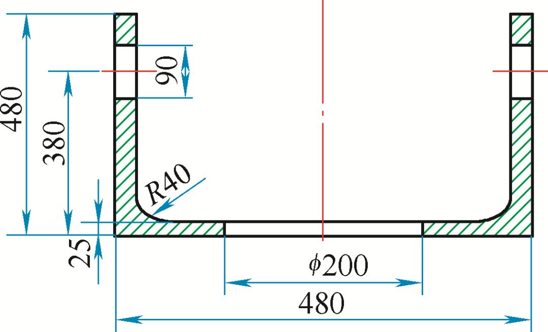 注:將主軸小徑端從尺寸φ200mm穿下,通過φ90mm雙孔穿杠子進(jìn)行起吊淬火。