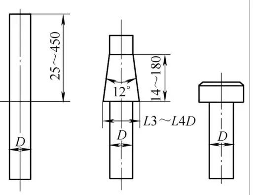 軸桿擠壓是使材料直徑縮小的加工方法,通常叫做正擠壓。軸桿的擠壓,可以分為圖9那樣的將坯料放入模具中進行擠壓的模內約束擠壓,及圖13b所示的自由擠壓。自由擠壓應用于加工度小的成形中。