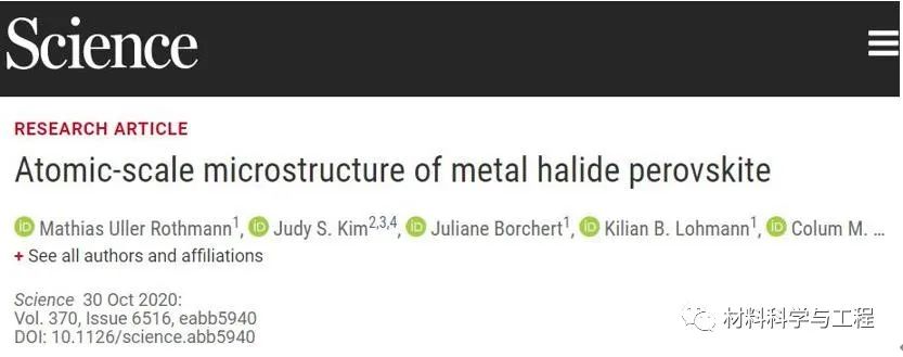 圖1金屬鹵化物鈣鈦礦結構的原子分辨率成像。