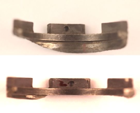 觀察襯套內表面有不同程度的擠壓磨損痕跡,周向磨損痕跡明顯,在花鍵端靠近丟失斷口一側磨損痕跡較對側更深,螺紋端與丟失斷口相反的一側磨損痕跡較深。