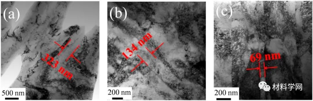 綜述所述,本文研究了五元Al0.3CoCrFeNi HEA纖維的微觀結構和力學性能的影響。采用熱旋鍛和熱拉工藝制備的HEA纖維主要織構為<111>和<100>織構。Al和Ni原子之間的強相互作用產生了大約200nm的B2 Al-Ni粒子。在HEA纖維的拉伸試驗中,析出的顆粒和細小的晶粒共同促進了纖維的持續高強度和延展性。特別是直徑為1.00 mm的纖維在298K時表現出了顯著的拉伸強度和延展性,分別為1207 MPa和7.8%,在77K時分別提高到1600 MPa和17.5%。與298K時的平面滑移變形機制相比,77K時變形后出現了形變誘導的納米孿晶,從而提高了77k時的拉伸強度和延性。HEA纖維在低溫下強度與延性的良好結合,為未來高性能HEAs工程材料的開發開辟了一條創新的道路。