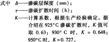 滲層深度與滲碳擴散時間的關系,如式(4 ) 所示: