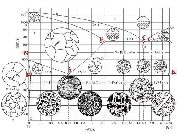 我們常說(shuō)的45鋼、奧氏體、馬氏體等金屬材料,他們的區(qū)別體現(xiàn)在硬度、處理方式等各方面,而在這些不同材質(zhì)的材料中,金相就是它們的基因代碼。下面這張鐵碳合金相圖是大家開(kāi)始了解金屬材料的基礎(chǔ)。