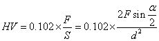 式中,F為負荷(牛頓力),S為壓痕表面積(平方毫米),α為壓頭相對面夾角=136°,d為平均壓痕對角線長度(毫米)。報告維氏硬度值的標準格式為xHVy。例如185HV5中,185是維氏硬度值,5指的是測量所用的負荷值(單位:千克力)。根據(jù)規(guī)定形狀的壓針在標準彈簧壓力作用下,于規(guī)定時間內(nèi)壓入試樣的深度轉(zhuǎn)換成的硬度值,代號為HS。