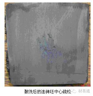 說明:在橫向酸浸試片的中心部位,呈現不規則的空洞或裂縫??斩椿蛄芽p中往往殘留著外來雜質。