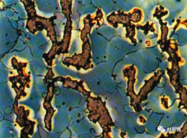 鐵素體多以分散分布塊狀及網狀形式存在。