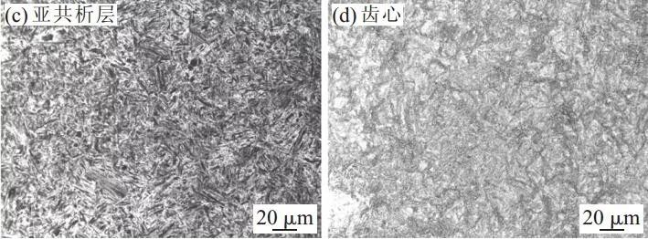 失效齒輪從齒尖至齒心的顯微組織見圖 3。