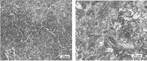 圖5為未失效齒輪金相組織,齒根靠近表面附近的金相組織為高碳馬氏體和粒狀碳化物,未觀察到網狀碳化物(見圖5a);心部組織為低碳馬氏體+鐵素體(見圖5b)。