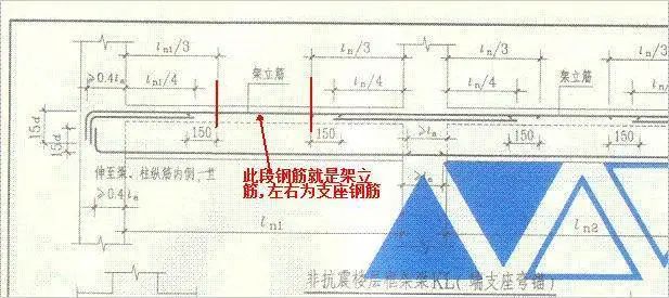 受力筋:指布置在梁或板的下部.承受拉力的那部分鋼筋及抗剪切的起彎筋.吊筋等。 (1)以板的開間、進深跨度區分:如果是單項板,那么平行于短跨方向的鋼筋是受力筋,平行于長跨方向的鋼筋是架立筋。如果是雙向板,那么長跨、短跨方向的鋼筋全部是受力筋。 (2)以鋼筋直徑上來區分:鋼筋的直徑大的為受力筋,直徑小的鋼筋為分布筋; (3)以布置上來區分:正彎矩筋布置在下的鋼筋為受力筋,在之上垂直分布的鋼筋為分布筋, 負彎矩筋(如懸挑板 )相反,在下的鋼筋為分布筋,在之上的鋼筋為受力筋。 分布筋: 出現在板中,布置在受力鋼筋的上部,與受力鋼筋垂直。作用是固定受力鋼筋的位置并將板上的荷載分散到受力鋼筋上,同時也能防止因混凝土的收縮和溫度變化等原因,在垂直于受力鋼筋方向產生的裂縫.屬于構造鋼筋。(滿足構造要求,對不易計算和沒有考慮進去的各種因素,所設置的鋼筋為構造鋼筋。) 圖中布置在下的鋼筋為受力筋,在之上垂直分布的鋼筋為分布筋箍筋: 用來滿足斜截面抗剪強度,并聯結受拉主鋼筋和受壓區混凝土使其共同工作,此外,用來固定主鋼筋的位置而使梁內各種鋼筋構成鋼筋骨架的鋼筋。是梁和柱抵抗剪力配置的環形(當然有圓形的和矩形的)鋼筋,是口字形的,將上部和下部的鋼筋固定起來,同時抵抗剪力。 架立筋:是梁上部的鋼筋,只起一個結構作用,沒實質意義,但在梁的兩端則上部的架立筋抵抗負彎距,不能缺少。(架立鋼筋設置在梁的受壓區外邊緣兩側,用來固定箍筋和形成鋼筋骨架。如受壓區配有縱向受壓鋼筋時,則可不再配置架立鋼筋。架立鋼筋的直徑與梁的跨度有關。) 貫通筋是指貫穿于構件(如梁)整個長度的鋼筋,中間既不彎起也不中斷,當鋼筋過長時可以搭接或焊接,但不改變直徑。 在鋼筋布置上,架立鋼筋是布置本跨的1/3.也就是說,本跨梁存在左右支座鋼筋.通長鋼筋是全長布置, 架立筋從字面是就可以知道起架立作用,如一根梁只須布抗拉筋和抗剪箍筋,而受壓區混凝土強度已足夠,無須配筋,那在做鋼筋骨架的時候,梁的上部就沒有縱向筋,箍筋的上角點就無法固定,因此一般用兩根14或16的筋分布在上面的兩角,這就是架立筋,從計算上沒有受什么力,但實際上也受壓。用于定位的后來可以不用,無須計算,而結構架立筋則須計算。架立筋起一定的受壓作用,可以在一定程度上提高梁的承載力。 貫通筋是指貫穿于構件(如梁)整個長度的鋼筋,中間既不彎起也不中斷,當鋼筋過長時可以搭接或焊接,但不改變直徑。貫通筋既可以是受力鋼筋,也可以是架力鋼筋。 架立筋是構造要求的非受力鋼筋,一般布置在梁的受壓區且直徑較小。當梁的支座處上部有負彎矩鋼筋時,架力筋可只布置在梁上的跨中部分,兩端與負彎矩鋼筋搭接或焊接。搭接時也要滿足搭接長度的要求并應綁扎。架力筋也有貫通的,如規范中規定在梁上部兩側的架力筋必須是貫通的,此時的架力筋在支座處也可承擔一部份負彎矩。 如果在梁的上下都有通長的鋼筋,一般在梁上(受壓區)且直徑較小的是架力筋,在梁下的是都受力鋼筋。 負筋:就是負彎矩鋼筋,彎矩的定義是下部受拉為正,而梁板位置的上層鋼筋在支座位置根據受力一般為上部受拉,也就是承受負彎矩,所以叫負彎矩鋼筋。(支座有負筋,是相對而言的,一般應該是指梁的支座部位用以抵消負彎矩的鋼筋,俗稱擔擔筋。一般結構構件受力彎矩分正彎矩和負彎矩,抵抗負彎矩所配備的鋼筋稱為負筋,一般指板、梁的上部鋼筋,有些上部配置的構造鋼筋習慣上也稱為負筋。當梁、板的上部鋼筋通長時,大家也習慣地稱之為上部鋼筋,梁或板的面筋就是負筋) 拉結筋:在無法同時施工的兩個或多個構件之間預留的起拉結作用的鋼筋就是拉結筋 。是加強框架填充墻與柱連結的受力鋼筋,提高了填充墻穩定性和抗震能力。 腰筋又稱“腹筋”,他的得名是因為他的位置一般位于梁兩側中間部位而得來的,是梁中部構造鋼筋,主要是因為有的梁太高,需要在箍筋中部加條連接筋 (梁側的縱向構造鋼筋實際中又稱為腰筋) 在梁高450mm,就應沿梁高兩側應設腰筋,所以數量上就不會少于2根。腰筋的直徑最小的直徑為10mm,間距不應大于200mm,同時面積配筋率不應小于百分之0.3,在梁兩側的縱向構造鋼筋(腰筋)之間還要配置拉結鋼筋。一般民用建筑的腰筋直徑用16和18就可以了,拉筋用圓8。