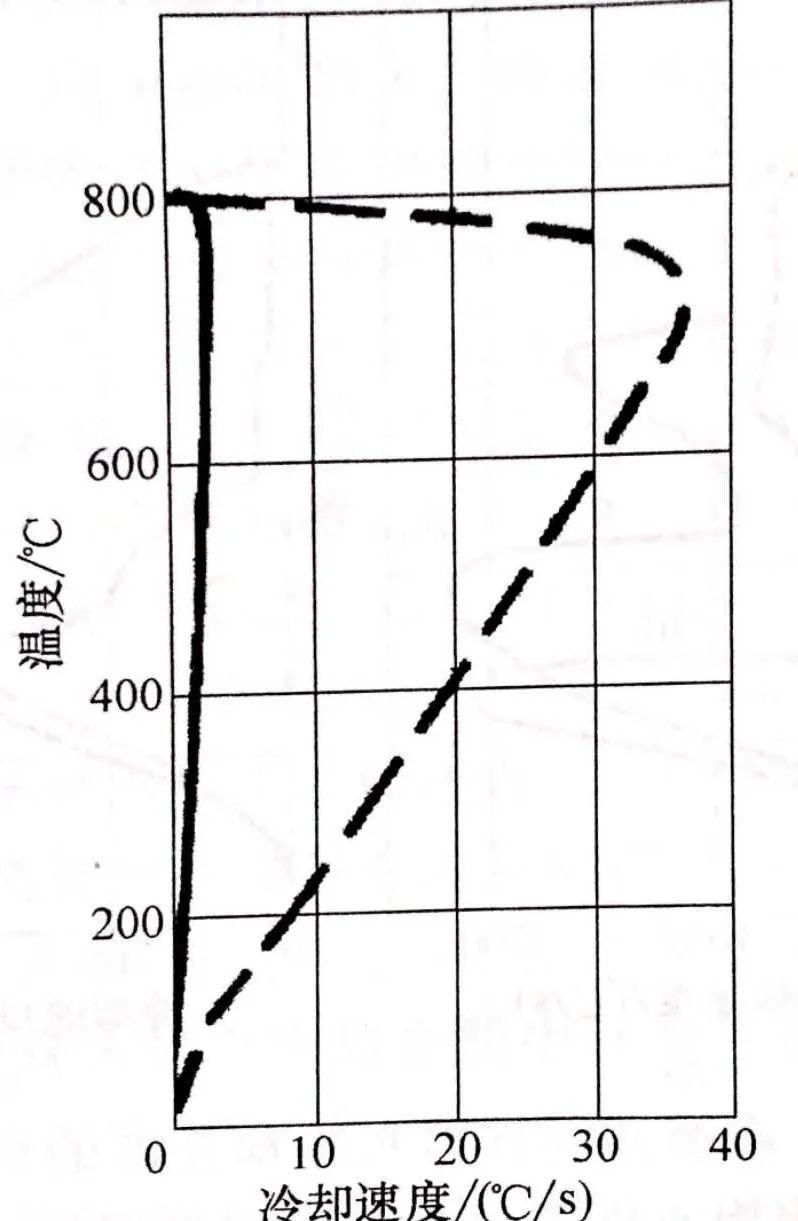 縮空氣(虛線)對鋼的冷卻速度的對比