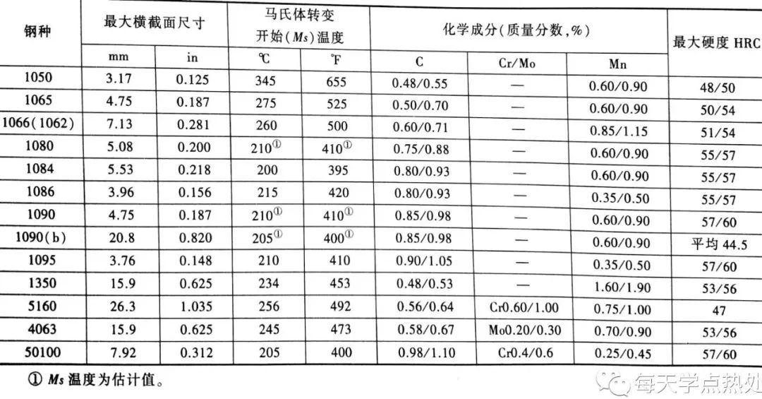 選擇分級淬火還是等溫淬火工藝還取決于材料的種類。表12 中列出了普通碳鋼、合金鋼及鑄鐵采用不同工藝時能夠達到的洛氏硬度。
