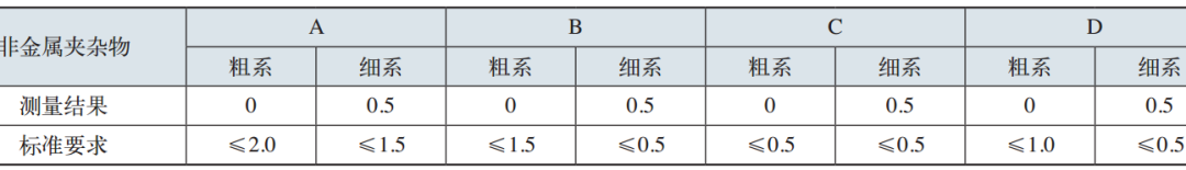 表2 非金屬夾雜物檢測(cè)結(jié)果   (級(jí))