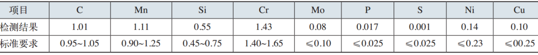 表1 軸承套圈的化學(xué)成分(質(zhì)量分?jǐn)?shù))  (%)