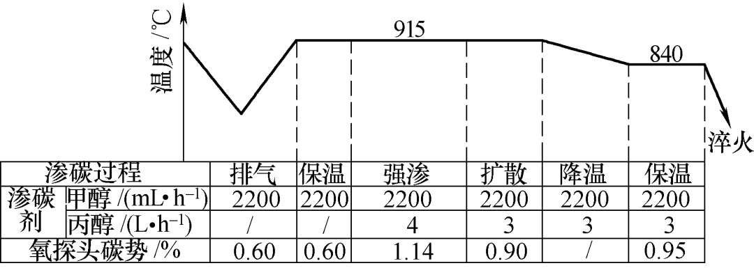 為了驗證滲碳擺放方式可靠性,我們繼續采用了原滲碳工藝,以便新的滲碳擺放方式與原來的方法相比較。