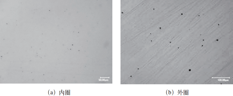 軸承套圈金相試樣拋光后未浸蝕的金相組織如圖11所示,可見其夾雜物主要為球狀(D類)細系,可評為1.0~1.5級。GB/T 29717—2013中對42CrMo軸承套圈材料要求D類非金屬夾雜物不超過1.0級。可見失效軸承套圈材料中的非金屬夾雜物略有超標。