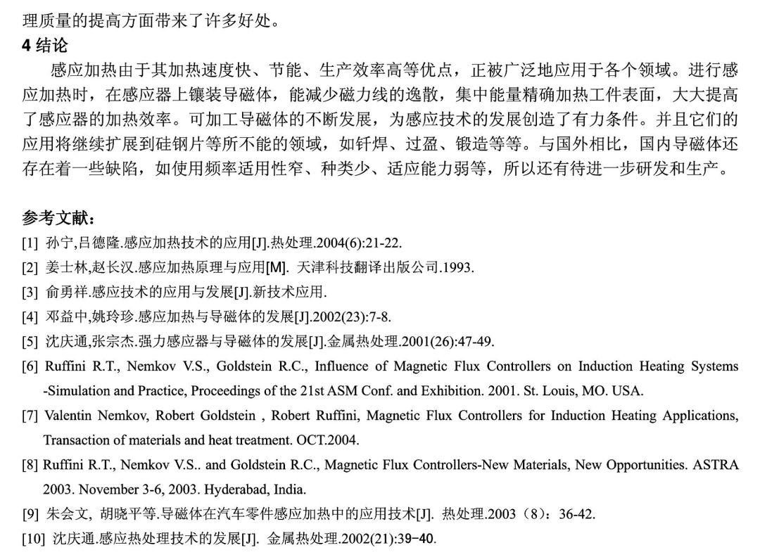 摘要:感應加熱技術在金屬熱加工、熱處理等領域有重要的應用。在感應加熱中,導磁體的應用具有顯著地提高感應器的加熱效率、提高產品質量、節(jié)省能源等優(yōu)點。目前,國內外可加工導磁體的研究與發(fā)展,為感應加熱新技術的進一步發(fā)展創(chuàng)造了有力的條件。與國外相比,我國在導磁體的研發(fā)方面還存在著一些不足,有待進一步深入。