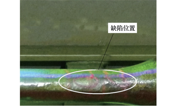 缺陷位置在杠桿的桿身靠近兩端處,如圖1所示。經觀察分析,杠桿外表面存在斑疤凹凸不平及尖端棱角,呈現直線狀近似裂紋的缺陷,外表面不存在點蝕現象,故排除腐蝕造成的缺陷。為了進一步確認缺陷產生的原因,進行了磁粉檢測、化學成分分析、金相檢驗等試驗。