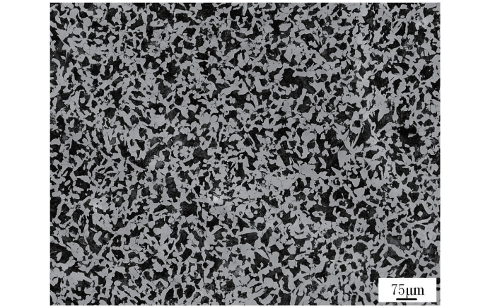 經4%硝酸酒精溶液腐蝕后,缺陷附近基體的多數區域組織依據GB/T 13320—2007《鋼制模鍛件金相組織》規定評定為珠光體+鐵素體的正火組織,晶粒度8級,如圖8所示。