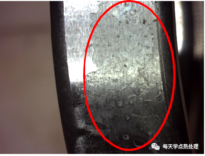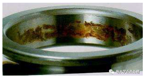在出現蝕損斑后如未及時發現,它會沿循環方向呈V型擴展,越來越大,導致軸承失效