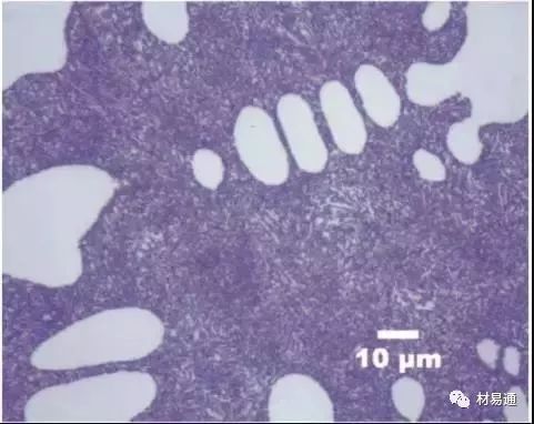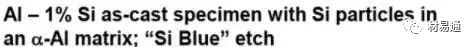 Al-1%Si 鑄造合金樣品,在初生α鋁基體中可見硅粒子。