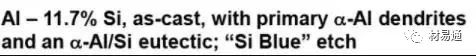 Al-11%Si, 鑄態組織,初生α枝晶和α-Al/Si共晶