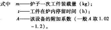 熱處理車間燃料消耗量,粗略計算時,可依單位重量工件消耗燃料指標和燃料爐生產量計算(參見6)。詳細計算時,應依據各燃料爐的燃料消耗量進行計算和統計。