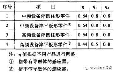 η-設備效率,η=η1×η2 (η1為感應器效率,η2淬火變壓器效率)