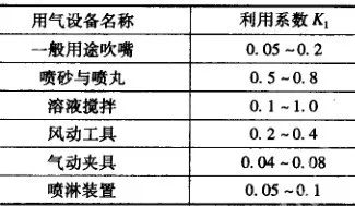 用于噴丸、吹干等用途的壓縮空氣消耗量可參考表 27 進行計算。各設備壓縮空氣年消耗量=小時平均消耗量×設備負荷率x設備設計年時基數。車間壓縮空氣年消耗量=各設備年消耗量之和×不正常損耗系數(一般取1.3~1.4) 。