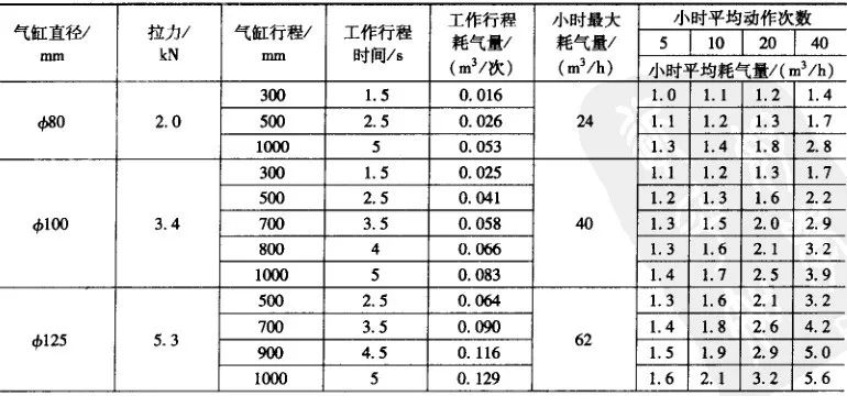 他氣缸推動機械也可參考此表數據估算。