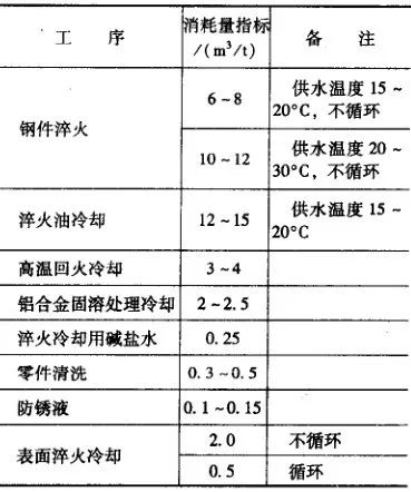 ▼表29 按工序每噸工件水消耗量指標