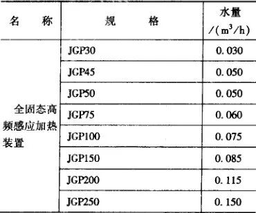 (1) 感應加熱設備冷卻用水量。按設備產品樣本的規定,其耗水量如表30所示。