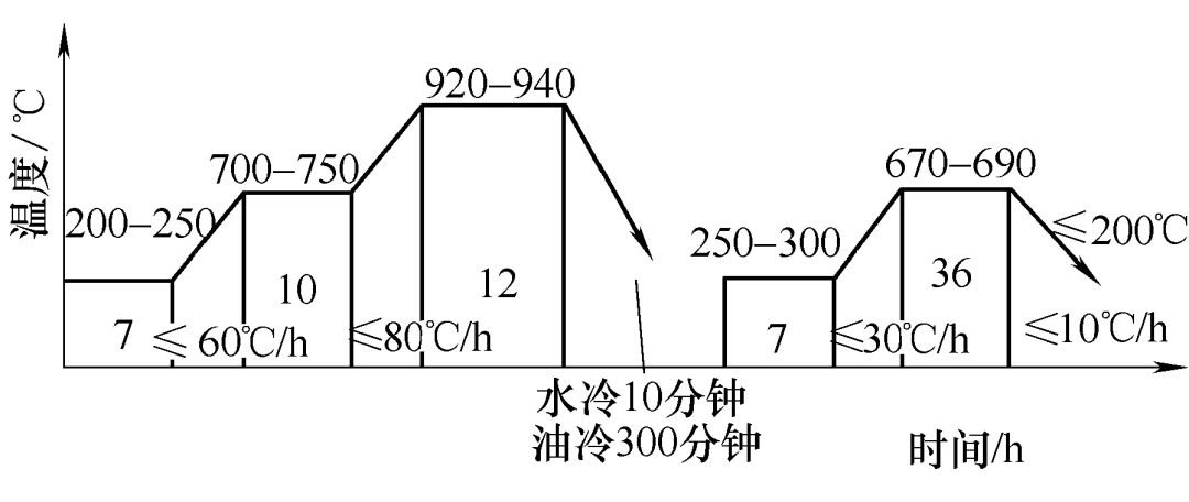 圖2 常規(guī)汽輪機(jī)高中壓調(diào)質(zhì)工藝曲線
