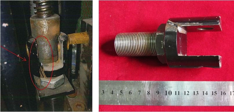 某核電2號機(jī)組常規(guī)島通風(fēng)、排水和溢流系統(tǒng)(簡稱“TDS系統(tǒng)”)一閥桿與齒輪箱連接用U形連接桿出現(xiàn)斷裂,導(dǎo)致設(shè)備損壞。斷裂件現(xiàn)場照片如圖1所示。根據(jù)設(shè)備供應(yīng)商提供的資料顯示,斷裂件牌號為ASME SA-29 4340,但未提供該產(chǎn)品最終熱處理狀態(tài)。為防止相同事件發(fā)生,并制定合理有效的預(yù)防措施,電廠隨即組織人員對斷裂件進(jìn)行斷裂原因分析。