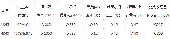 表3 牌號1345和4340鋼力學(xué)性能對比