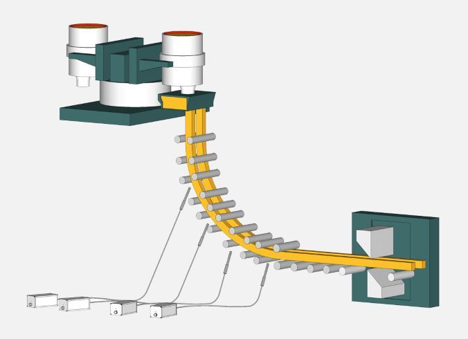 拉坯矯直裝置又稱為拉坯直輥,它的主要作用是用可調節的速度將鋼坯不斷地從結晶器內拉出來,而且在弧形連鑄機上還能將彎曲的鋼坯矯直,并使之沿水平方向輸出。