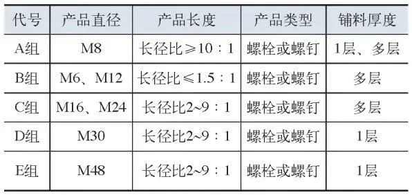 1)測試分組根據緊固件的典型特點進行分組,共分5組。