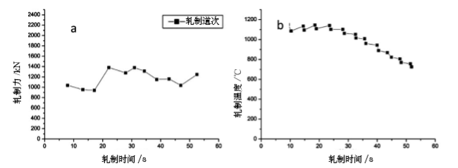 圖2 904L軋制力、軋制溫度與軋制道次關(guān)系(a 軋制力 b 軋制溫度)