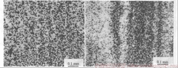 將具有二次帶狀組織的熱變形鋼試樣改用含有CuCl2的試劑浸蝕后在顯微鏡下觀察,則顯示出一次帶狀組織。