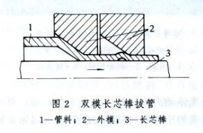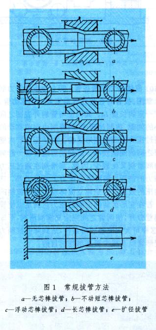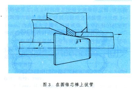 為了克服常規(guī)冷拔法的缺點,不斷研究出以下一些拔管方法:(1)圓錐芯棒拔管(圖3),同一般短芯棒相比拉桿力Pc小。