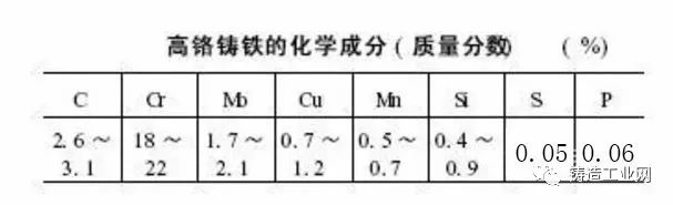1. 高鉻鑄鐵化學成分( 見下表)
